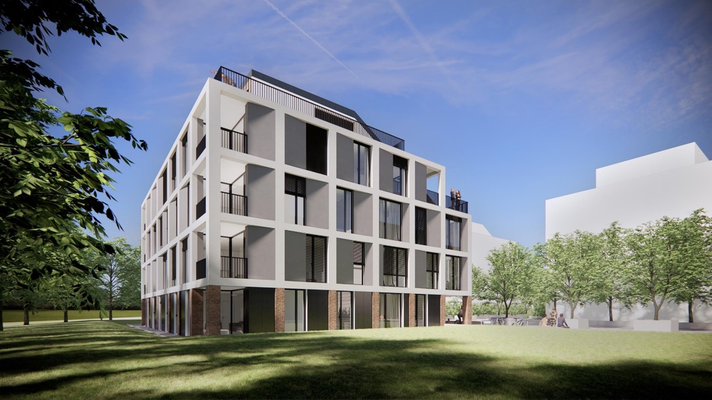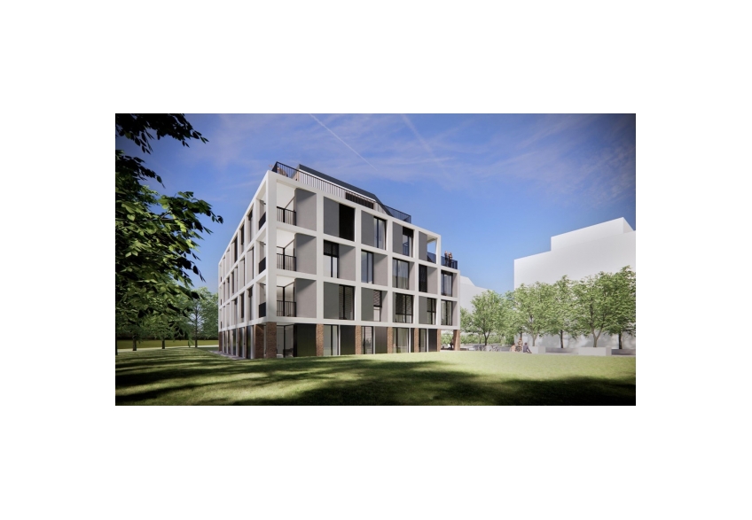 New construction of a multi-storey residential building with two-level underground garage