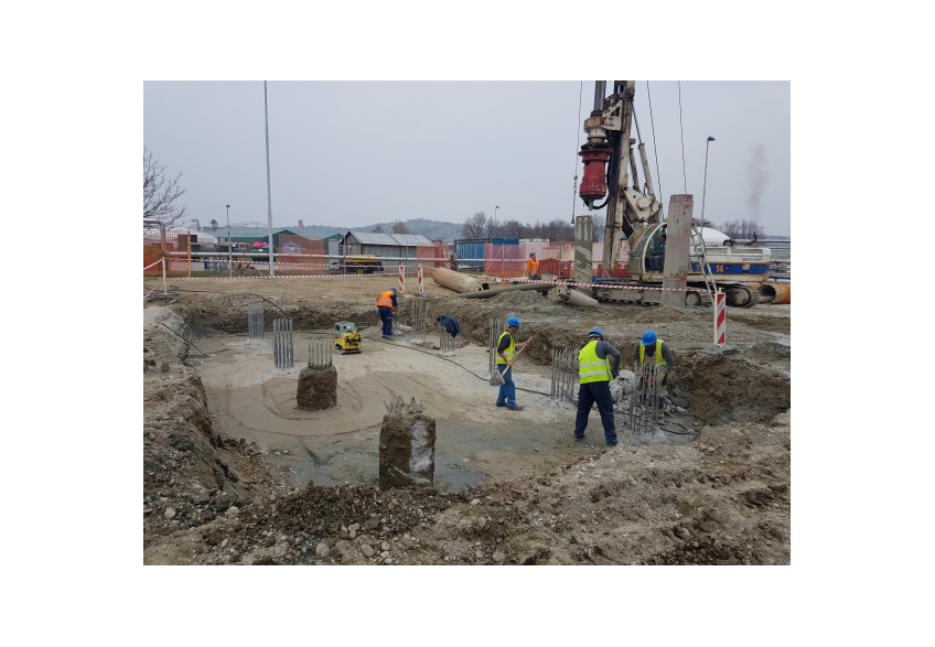 Nosilna konstrukcija: AB jeklena skeletna konstrukcija, globoko temeljenje na pilotih